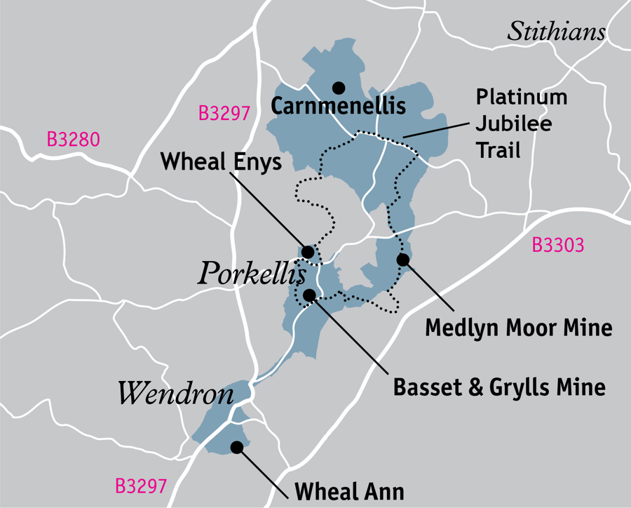 In the heart of beautiful countryside surrounded by open moorland and gushing streams, Wendron is one of the smallest Areas in the Site – although its rich tin deposits meant it once had enough inhabitants to rival the combined population of Redruth and Camborne.